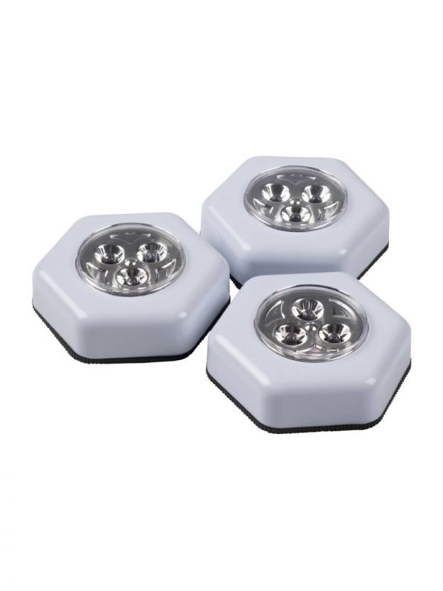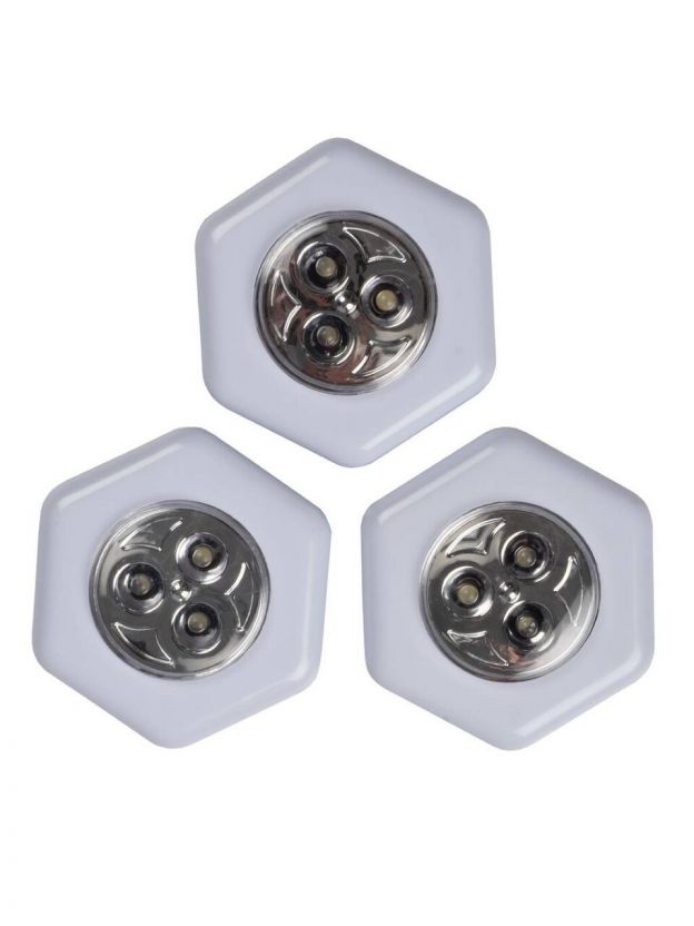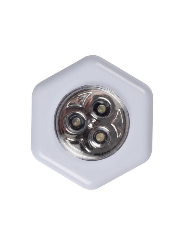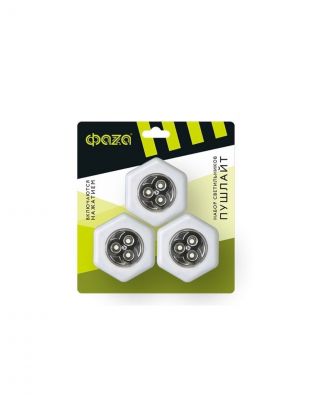 Светильник светодиодный ФАZА TF3-3xL3-H-wh — стильное и компактное решение для дополнительного освещения дома или дачи. Благодаря пушлайт-механизму и работе от элементов питания 3хААА, установка максимально проста и не требует проводки. Шестиугольная форма, белый цвет и холодный свет 6500 К отлично впишутся в современный интерьер. Световой поток 15 Лм обеспечивает мягкое освещение для коридора, шкафа или кладовой.