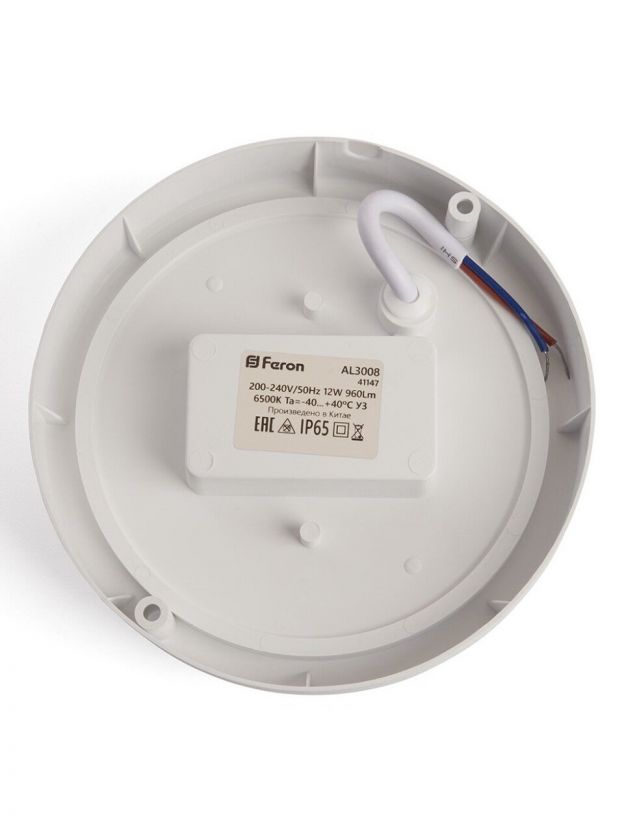 Светильник светодиодный, Feron, AL3008, 12 Вт, 6500 К, 960 Лм, IP65, 14х14х3.5 см, дневной свет, пластиковый корпус, 41147