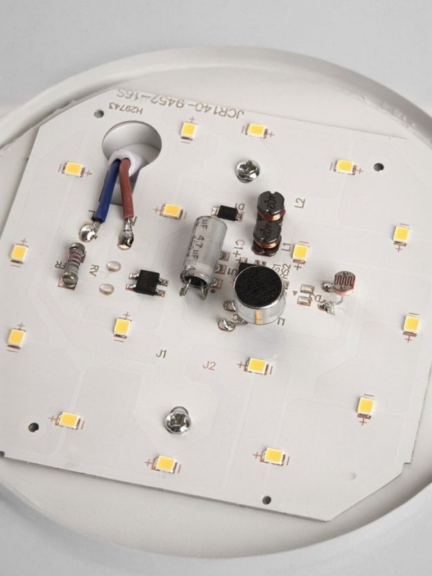 Светильник оснащен фото-шумовым (оптико-акустическим) датчиком. Подходит для установки на стены и потолок.