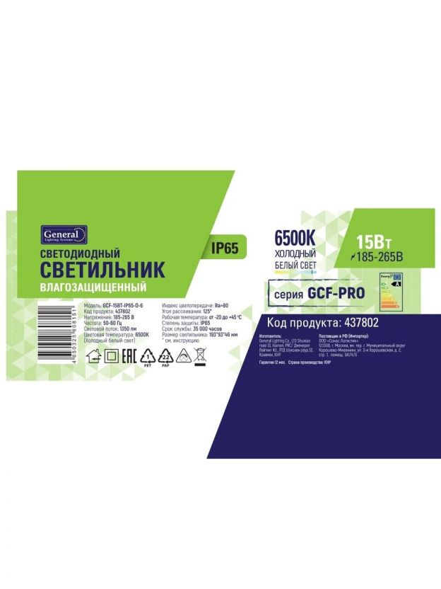 Ищете, как выбрать светильник для гаража или офиса? Модель GCF-15BT-IP65-O-6 от General Lighting Systems — это оптимальное соотношение цены и качества, быстрая установка, гарантия 12 месяцев и современный лаконичный дизайн. Закажите сейчас и получите долговечное освещение с официальной гарантией производителя.