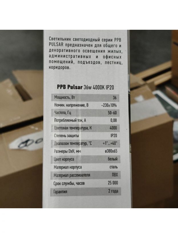 Модель JazzWay PPB Pulsar отличается высокой энергоэффективностью и оптимальной цветовой температурой 4000 К, создавая приятный нейтральный белый свет, который не искажает цвета и способствует комфортной работе и отдыху. Световой поток 2760 Лм обеспечивает качественное и равномерное освещение даже просторных комнат, а степень защиты IP20 делает светильник отличным выбором для сухих помещений.