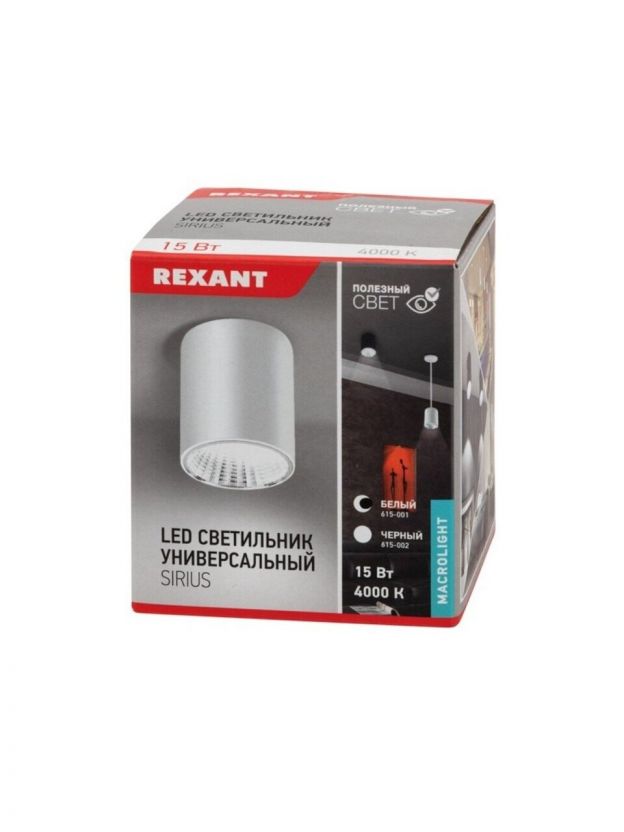 Светильник светодиодный, Rexant, Sirius, 15 Вт, 4000 К, 1275 Лм, IP20, 5.5х5.5х6.8 см, белый, 615-001