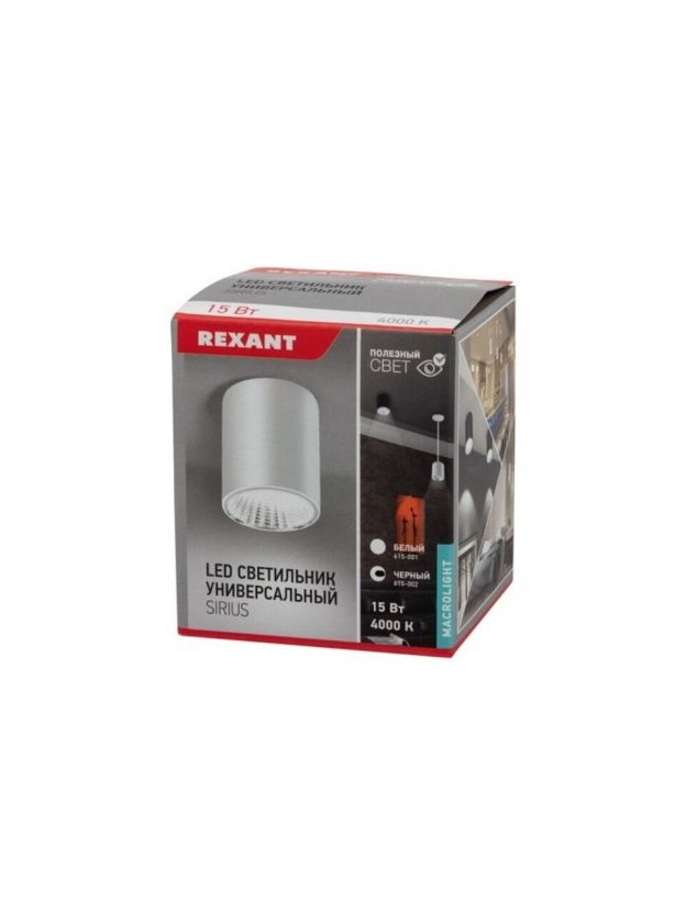Светильник светодиодный, Rexant, Sirius, 15 Вт, 4000 К, 1275 Лм, IP20, 5.5х5.5х6.8 см, черный, 615-002
