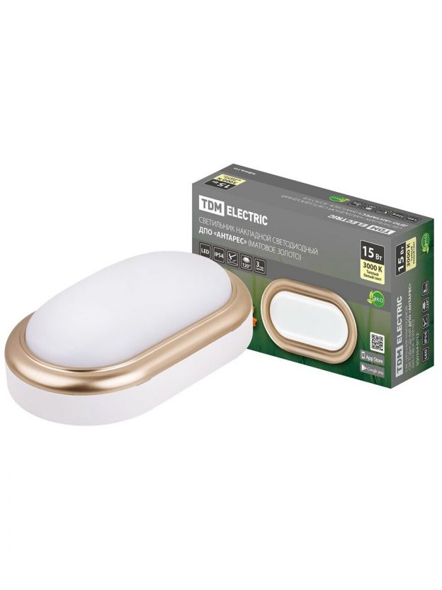 Светильник светодиодный, TDM Electric, ДПО Антарес, 15 Вт, 4000 К, 1500 Лм, IP54, 22.1х13.1х6.8 см, матовое золото, SQ0354-0020