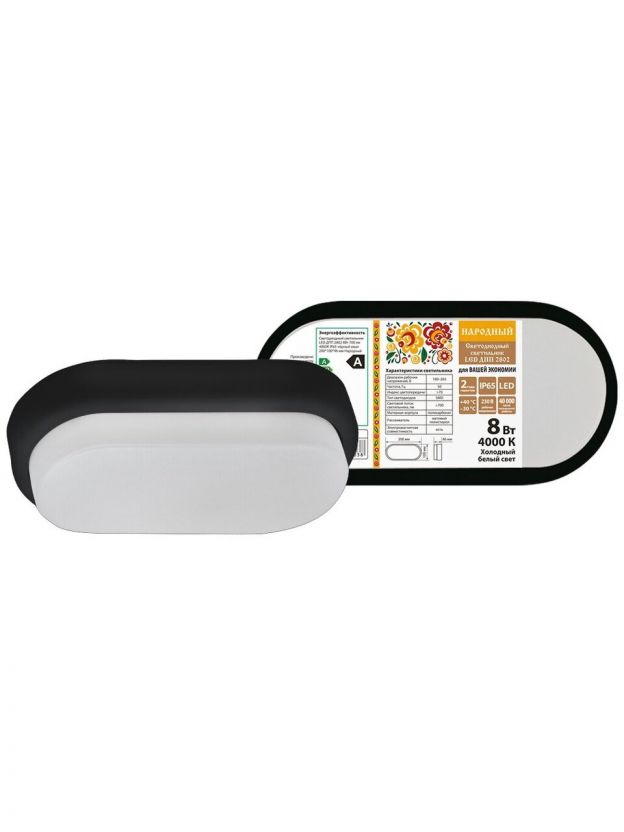 Светильник светодиодный, TDM Electric, ДПП 2802 Народный, 8 Вт, 4000 К, 700 Лм, IP65, 20х10х4.6 см, черный, SQ0366-0135