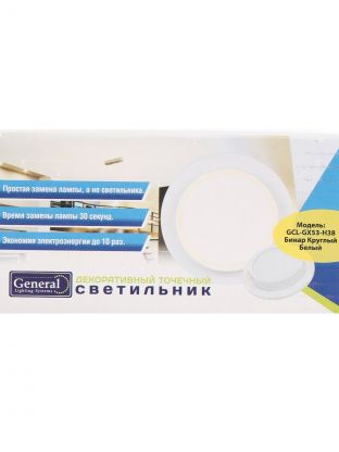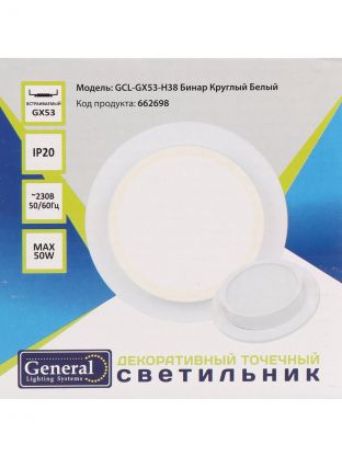 Светильник встраиваемый Бинар, GX53, круглый, белый, General Lighting Systems, GCL-GX53-H38