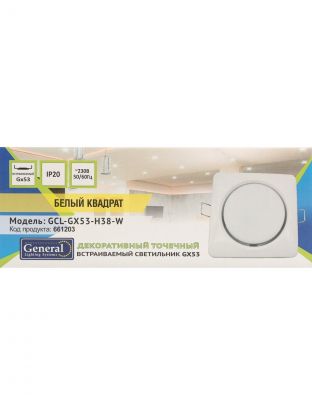 Светильник встраиваемый GX53, квадратный, обьемный, белый, General Lighting Systems, GCL-GX53-H38-W