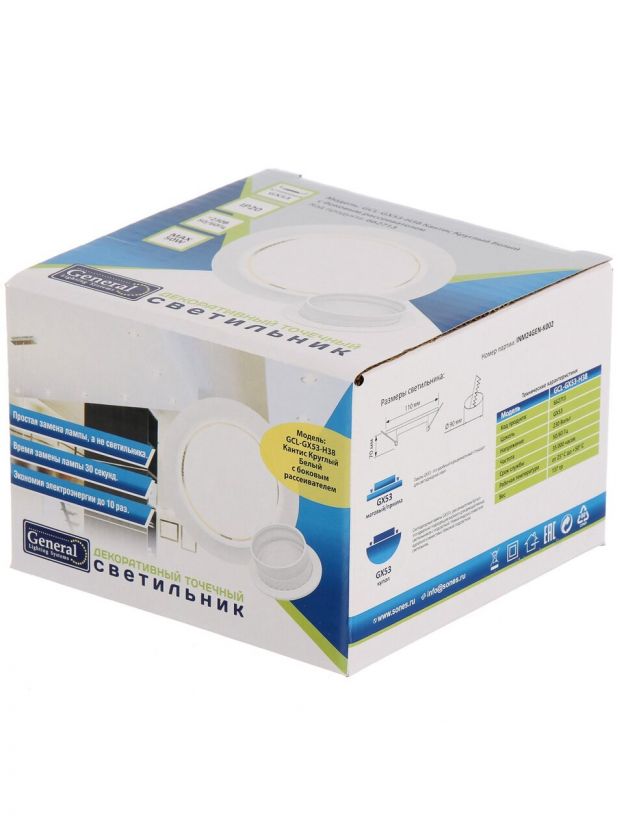 Как использовать светильник GE Кантис GX53? Просто подключите к стандартной сети 230 В, установите в потолок или мебель — идеально для обновления освещения в доме, офисе, на даче. Покупая этот светильник, вы получаете надёжность General Lighting Systems и универсальность применения.