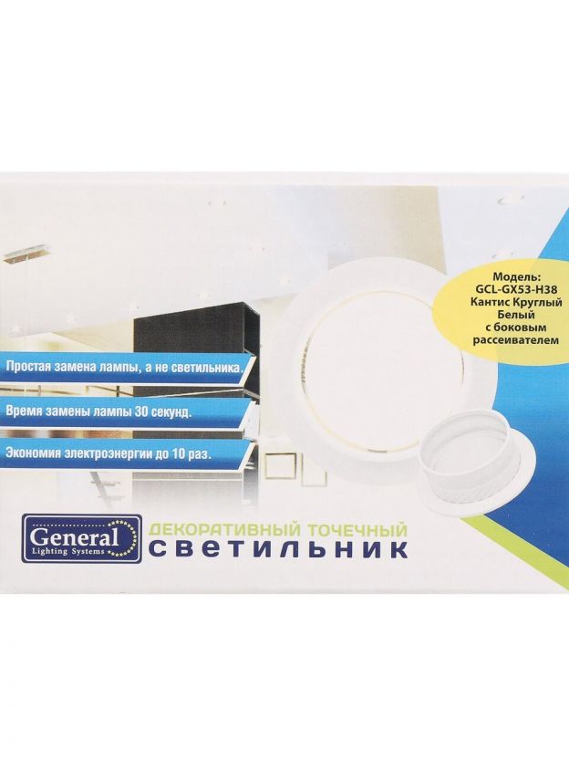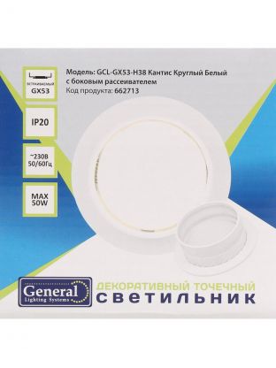 Светильник встраиваемый Кантис, GX53, круглый, с боковым рассеивателем, белый, General Lighting Systems, GCL-GX53-H38
