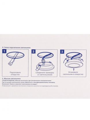 Для монтажа требуется отверстие диаметром 90 мм, высота корпуса — 7 см. Легко устанавливается в стандартные потолки и мебельные конструкции.