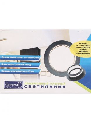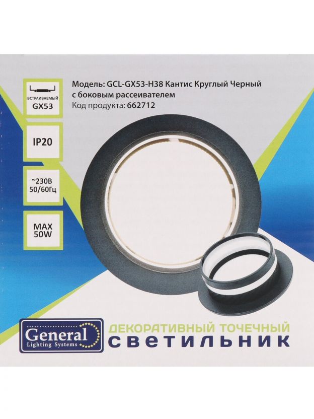 Светильник встраиваемый Кантис, GX53, круглый, с боковым рассеивателем, черный, General Lighting Systems, GCL-GX53-H38