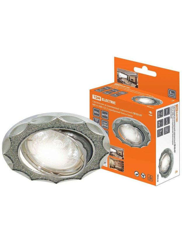 Светильник встраиваемый поворотный, СВ 02-07, G5.3, MR16, 50 Вт, серебряный блеск, хром, TDM Electric, SQ0359-0039