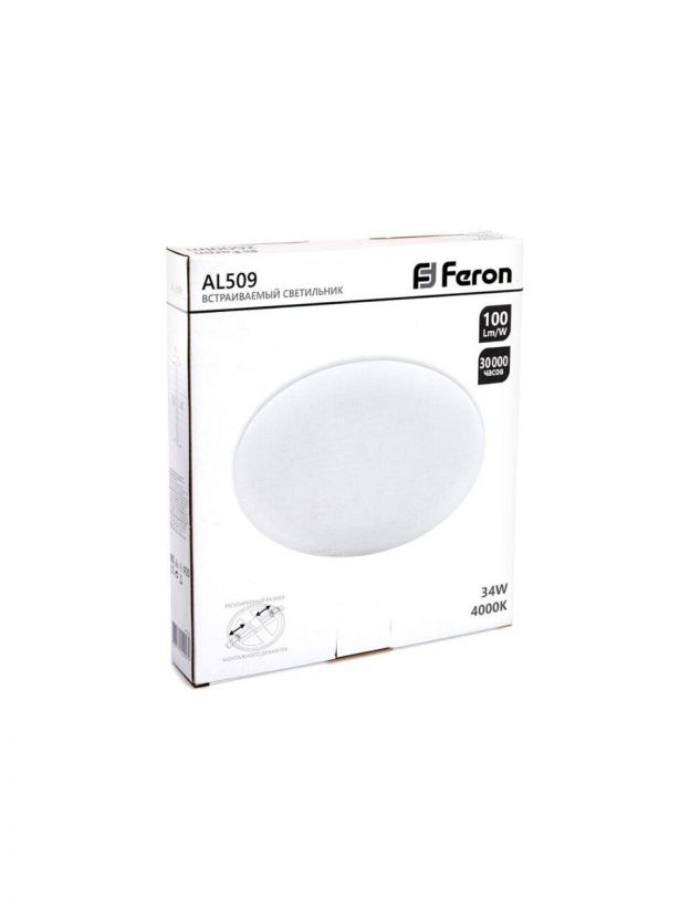 Светильник встраиваемый светодиодный, Feron, AL509, 34 Вт, 4000 К, 3400 Лм, IP20, 22.5х22.5х2 см, белый свет, 41567