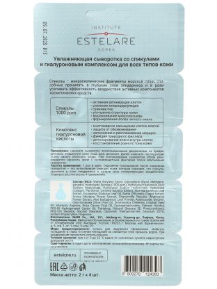 Сыворотка для лица, Institute Estelare, увлажняющая, со спикулами и гиалуроновым комплексом, 8 г