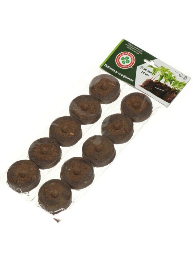 В упаковке 10 таблеток диаметром 36 мм — стандартный размер для большинства семян.