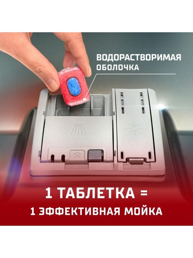 Таблетки для посудомоечной машины эффективно удаляют загрязнения и жир, предотвращают потускнение и коррозию посуды, смягчают воду и защищают машину от образования накипи. Они обеспечивают ослепительную чистоту и блеск, не оставляя разводов и придавая посуде свежий аромат.