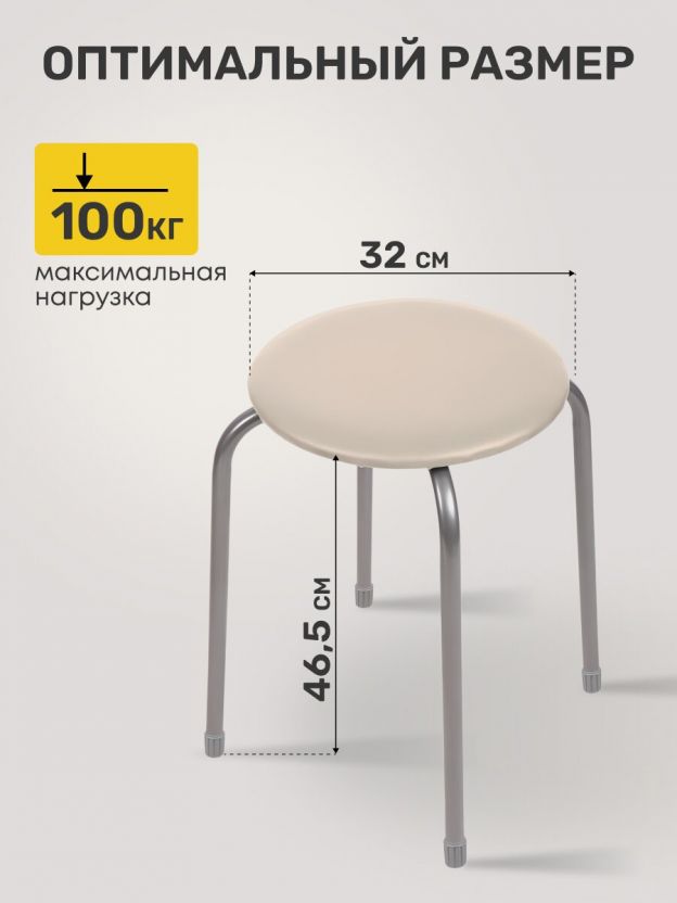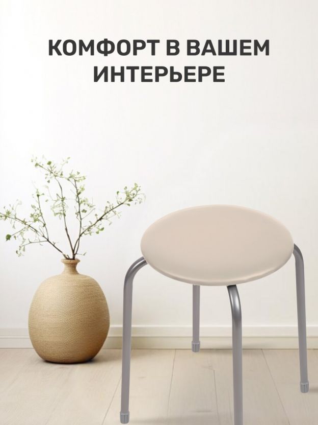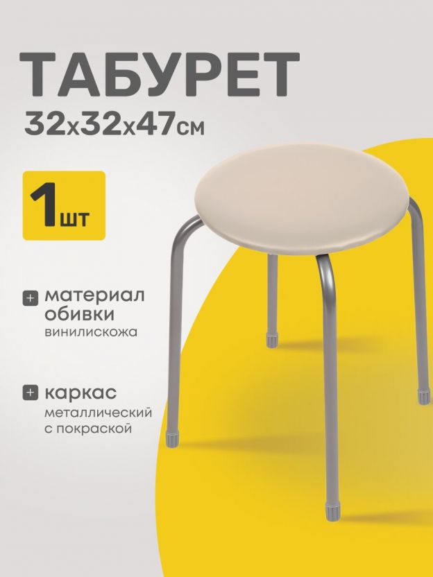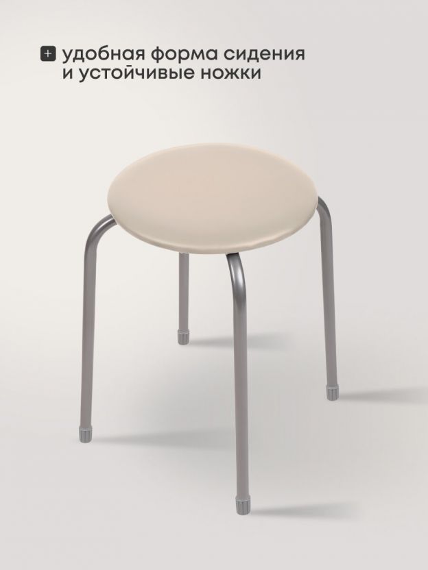 Табурет 320х320х470 мм Nika — компактное решение для кухни и дома: прочная металлическая конструкция, мягкое сиденье, актуальный цвет слоновой кости.