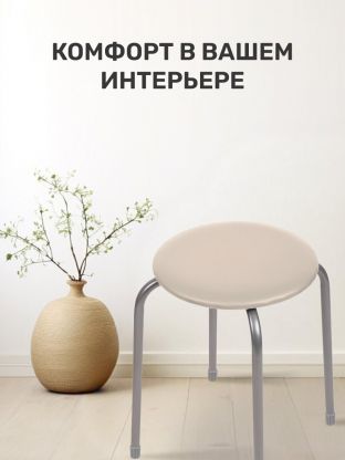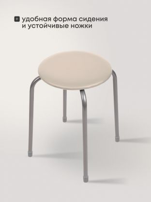 - Уникальный дизайн: стильный табурет с круглым сиденьем из винилискожи на четырех металлических опорах — гармонично впишется в любой современный интерьер.