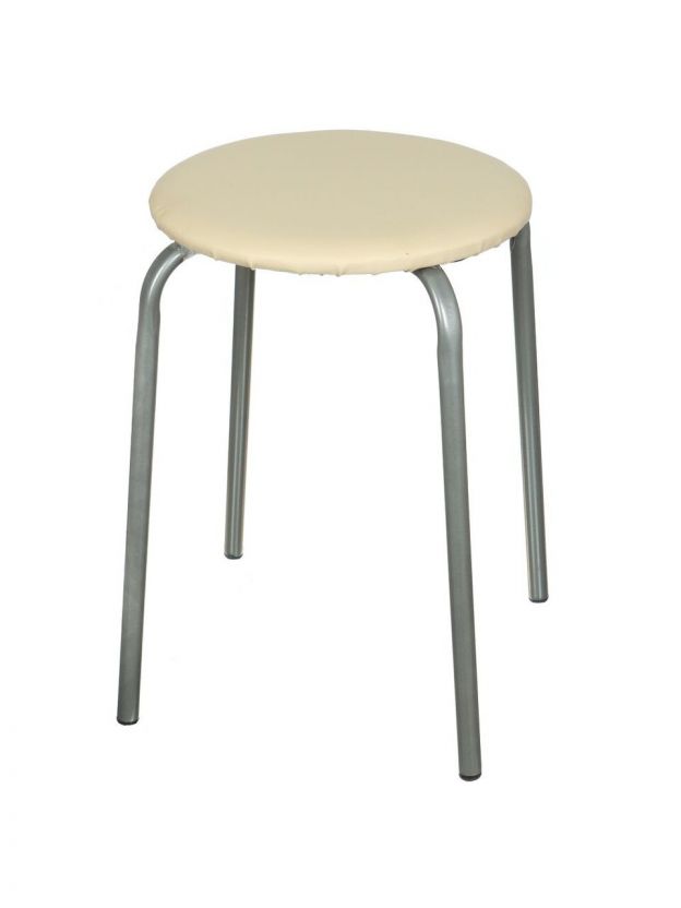 Табурет 320х320х470 мм, слоновая кость, сиденье круглое, винилискожа, на болтах, на четырех металлических опорах, Nika, ТЭ2/СК