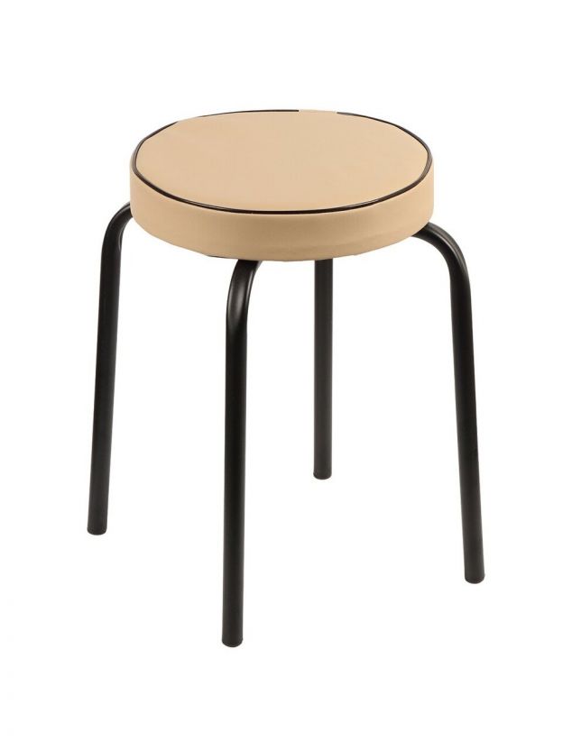 Табурет 360х360х475 мм, песочный/черный матовый, сиденье круглое, экокожа, Пуф
