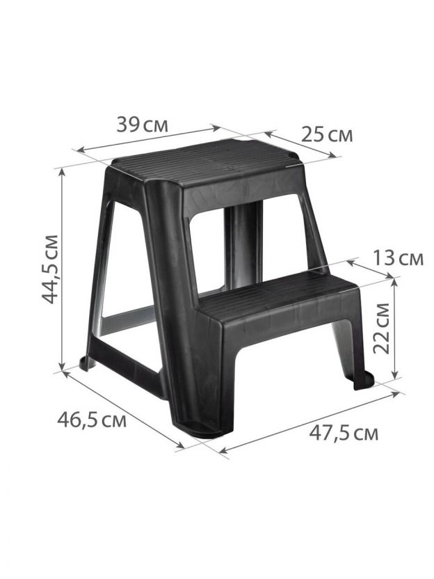 Табурет 465х475х445 мм, черный, прямоугольный, со ступенькой, Idea, М2296