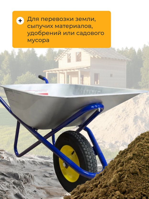 - Высокая грузоподъемность: позволяет перевозить до 180 кг материалов, что значительно увеличивает производительность труда.