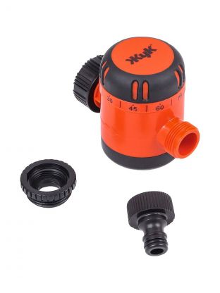 Таймер устанавливается между краном и шлангом. С помощью ручки выставляется нужное время (до 120 минут), после чего начинается обратный отсчет. По истечении времени подача воды автоматически прекращается.