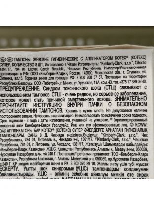 Тампоны Kotex, Супер, 8 шт, 223132