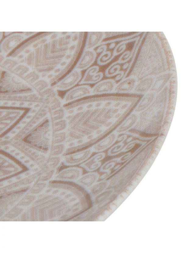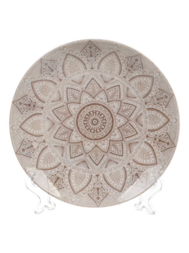 Диаметр — 17,5 см, форма — круглая, материал — фарфор с декоративным узором; рассчитана на подачу десертов и закусок.