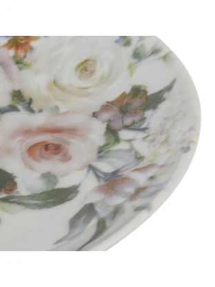 Фарфор устойчив к сколам, не впитывает запахи и легко моется. Универсальный размер и изысканный декор делают эту тарелку отличным выбором для сервировки на даче и презентабельным подарком.