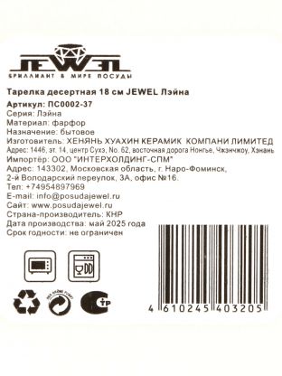 Тарелка десертная фарфоровая 18 см Jewel Лейна — стиль для вашего стола: белоснежная классика, долговечность, идеальна для подарка или ежедневного использования.