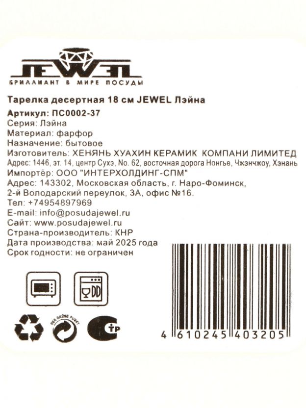 Диаметр тарелки — 18 см. Это оптимальный размер для подачи десертов, тортов, фруктов, мини-закусок как дома, так и на даче.