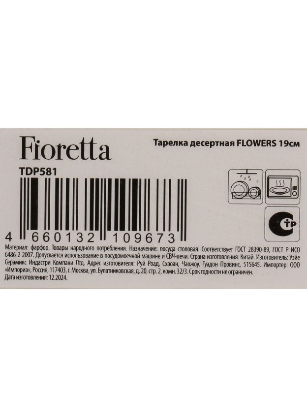 Да, фарфоровая тарелка Fioretta Flowers (артикул TDP581) подходит для использования в СВЧ и посудомоечной машине, не теряя цвета и рисунка.