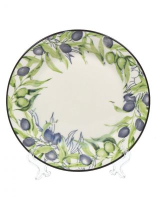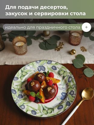Тарелка десертная фарфоровая 20 см «Оливки» МФК — стиль сервировки для дома и дачи: прочный фарфор, изящный рисунок, подходит для СВЧ и посудомойки.