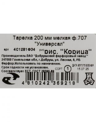 Тарелка десертная, фарфор, 20 см, круглая, Универсал Корица, Добрушский фарфоровый завод, 4С1281Ф34
