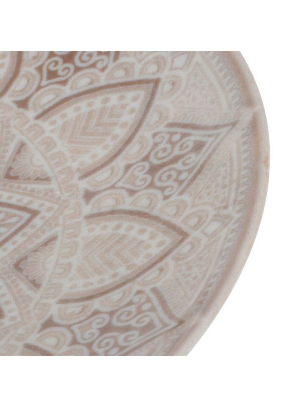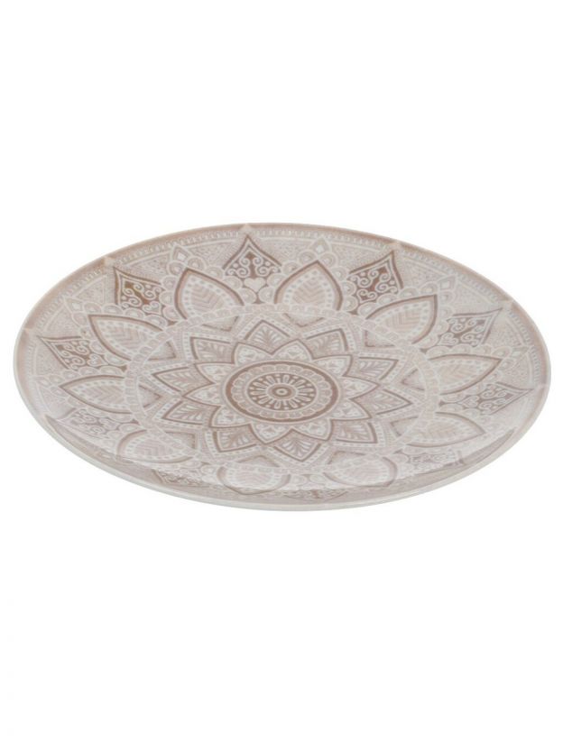 Диаметр тарелки — 20 см, форма — круглая, цвет — бежевый, без рисунка, универсальна для десертов, закусок и сервировки.