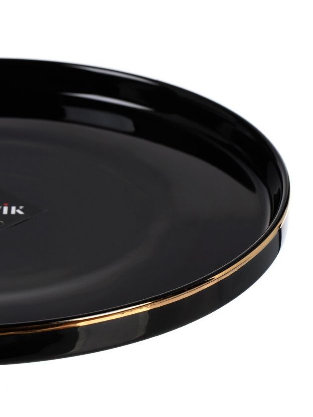 • Элегантный дизайн: глубокий чёрный цвет и золотая кайма создают акцент на сервировке
