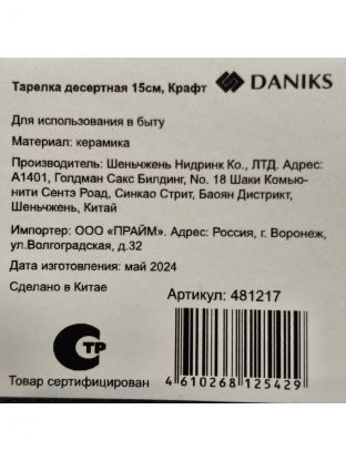 Выбирайте десертную тарелку Daniks Крафт, если хотите купить недорого керамическую посуду для дачи или дома с гарантией качества и быстрой доставкой. Оформите заказ сейчас и получите стильное решение для сервировки уже через несколько дней.