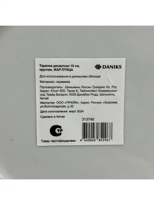 Тарелка десертная Daniks Жар-Птица 18 см: стильная керамика с гжелью для сервировки и подарка — подходит для СВЧ и посудомоечной машины