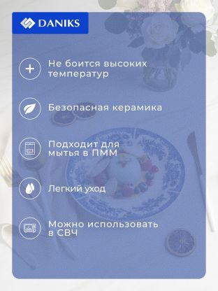 В отличие от аналогов из стекла или пластика, керамика Daniks не впитывает запахи и устойчива к царапинам. Часто спрашивают: «Можно ли использовать такую тарелку в микроволновке?» — да, изделие рассчитано на нагрев и не теряет яркости рисунка. Для тех, кто выбирает посуду для дачи, актуален вопрос: «Чем отличается керамика от фаянса?» — керамика более устойчива к сколам и перепадам температуры.