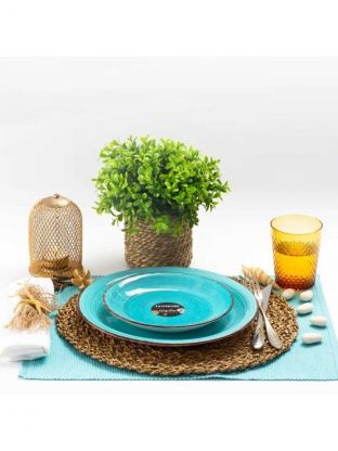 Часто спрашивают, чем отличается эта модель от аналогов: Laguna выделяется выразительной бирюзовой палитрой и оригинальным узором-полоской, что добавляет интерьеру свежести. В отличие от стеклянных или пластиковых тарелок, керамика лучше сохраняет температуру блюда и не впитывает запахи. Если вы ищете, какую тарелку выбрать для сервировки на даче или как использовать посуду в микроволновке — Laguna Domenik подходит для обеих задач.