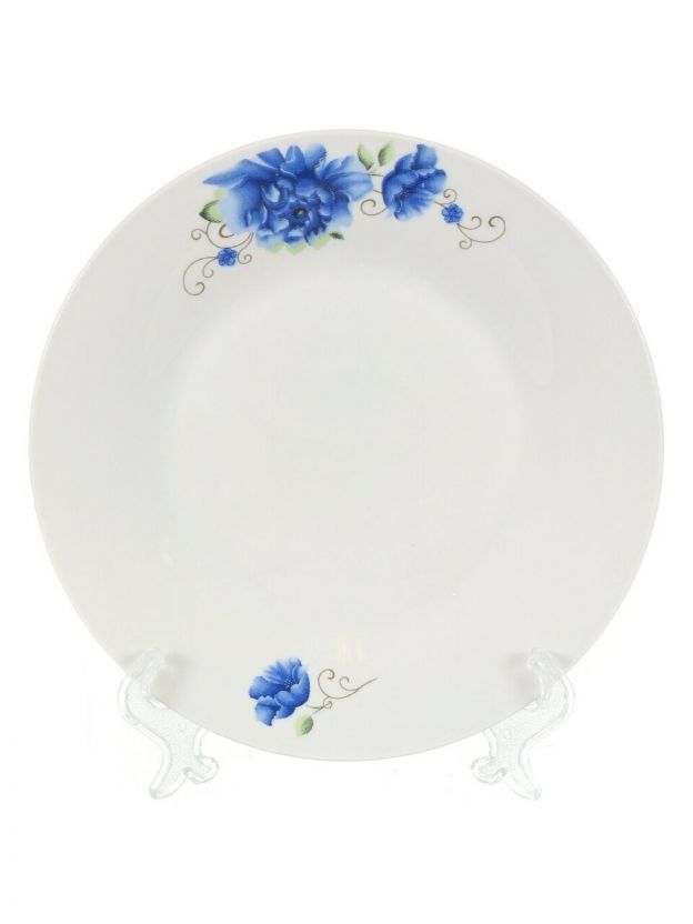 Десертная тарелка Daniks Мэджик Блю 19 см – изысканная керамика с цветочным рисунком для стильной сервировки, подходит для микроволновки и посудомоечной машины.
