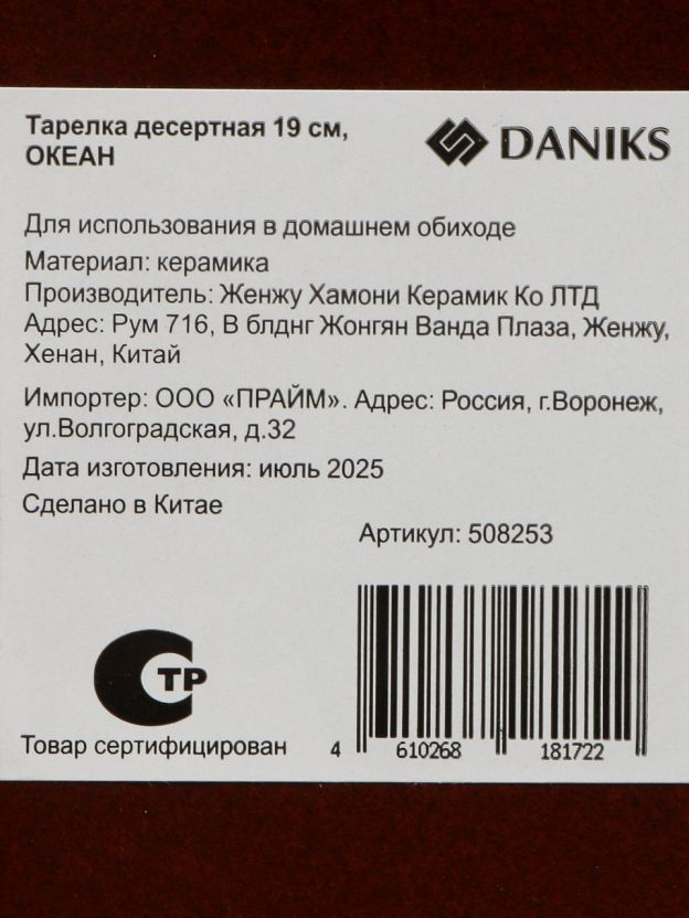 Тарелка десертная Daniks Океан 19 см: стильная керамика для сервировки и подарка, подходит для СВЧ и посудомоечной машины. Закажите выгодно!