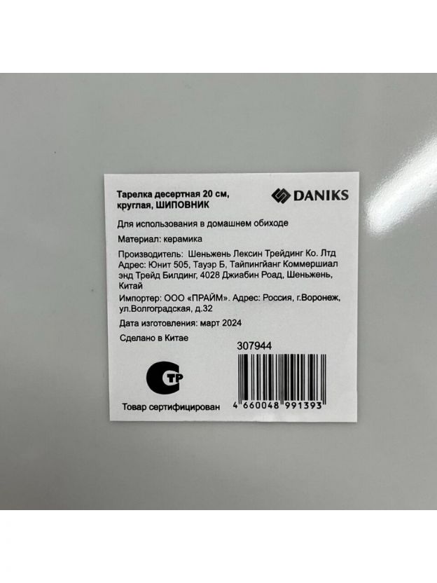 Тарелка десертная Daniks Шиповник 20 см — стильное решение для сервировки, подходит для дома, дачи и подарка. Керамика, рисунок, можно мыть в посудомойке.