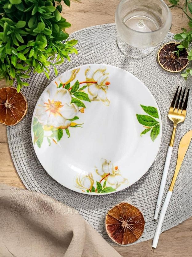 Тарелка десертная Daniks Шиповник 20 см — стильное решение для сервировки, подходит для дома, дачи и подарка. Керамика, рисунок, можно мыть в посудомойке. Почему выбирают: Уникальный дизайн с цветочным рисунком «Шиповник» — украсит любой стол и создаст атмосферу уюта Оптимальный диаметр 20 см: удобно для десертов, закусок, лёгких салатов; керамика устойчива к царапинам и перепадам температуры Универсальность: подходит для ежедневного использования, сервировки на даче или как красивый подарок Десертная тарелка Daniks Шиповник диаметром 20 см — отличный выбор, если вы ищете, какую посуду выбрать для сервировки сладких блюд, фруктов или лёгких закусок. Керамика отличается долговечностью и хорошо сохраняет внешний вид даже при частом мытье в посудомоечной машине или использовании в микроволновке. Благодаря лаконичной круглой форме и цветочному рисунку, тарелка гармонично впишется в классический и современный интерьер кухни. Если вы сомневаетесь, чем отличается керамическая тарелка от стеклянной или фарфоровой, обратите внимание на её устойчивость к сколам и простоту ухода. Модель Daniks Шиповник — это не только эстетика, но и практичность: изделие не впитывает запахи, не теряет яркости рисунка и легко очищается. Подходит для индивидуального использования и сервировки праздничного стола. Как использовать тарелку 20 см? Она идеальна для порционных десертов, сырных тарелок, подачи канапе, а также как универсальная мелкая тарелка. Выбирая тарелку Daniks для дачи или подарка, вы получаете сочетание стиля, удобства и долговечности. Закажите сейчас — и получите выгодные условия доставки, гарантию на оригинальный товар и уверенность в качестве сервировки вашего стола. Частые вопросы: Можно ли мыть тарелку Daniks Шиповник в посудомоечной машине? Да, тарелка полностью подходит для мытья в посудомоечной машине и использования в микроволновке, рисунок не выцветает, керамика не деформируется. Подходит ли эта тарелка для подарка или дачи? Да, универсальный дизайн и качественная керамика делают её отличным выбором для подарка, а также для ежедневного использования на даче или в доме. Какой размер у тарелки Daniks Шиповник? Диаметр 20 см, форма круглая, высота стандартная для десертных тарелок. В наборе 1 штука, цвет — белый с цветочным рисунком.
