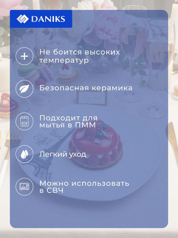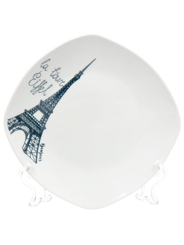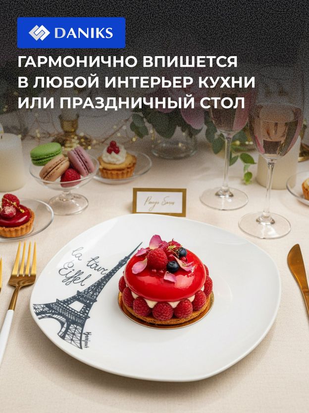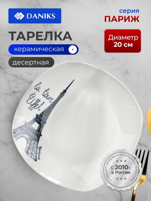 Десертная тарелка Daniks Париж 20 см: стильная сервировка и практичность для дома и подарка — керамика, квадратная форма, подходит для СВЧ и ПММ