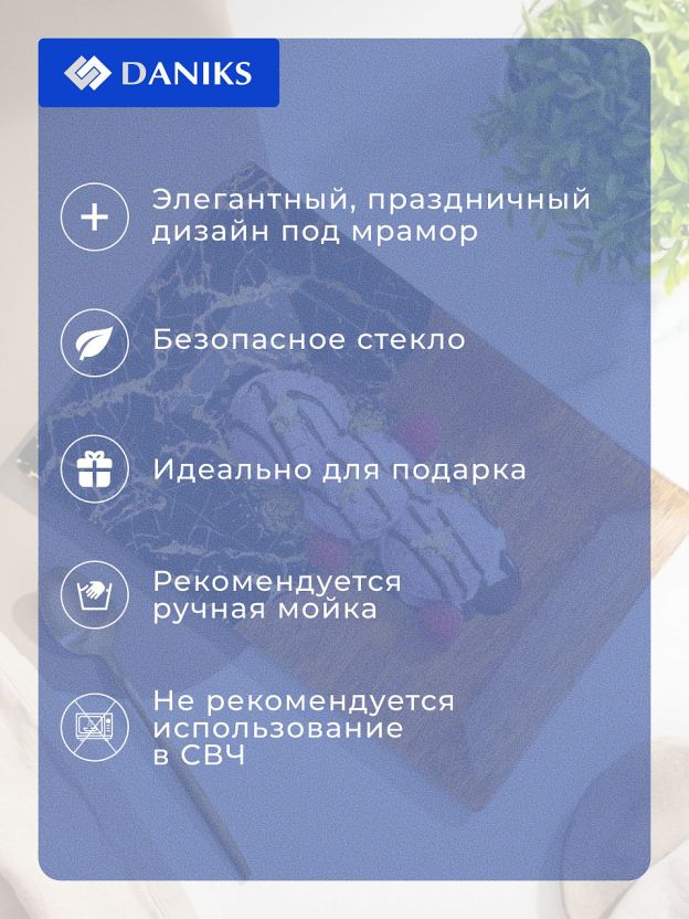 Тарелка десертная Daniks Лофт 20х30 см — стильная сервировка для дома и подарка: стекло под мрамор, универсальный размер, выгодная цена.