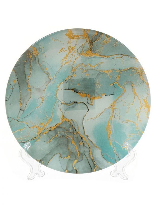 Десертная тарелка Daniks Флюид бирюза — это не просто посуда, а элемент стильной сервировки. Круглая форма и диаметр 18 см позволяют использовать тарелку как для десертов, так и для закусок, пирожков, фруктов. Бирюзовый оттенок с абстрактным рисунком «под мрамор» выделяет её среди аналогов из прозрачного или белого стекла, делая сервировку современной и запоминающейся.