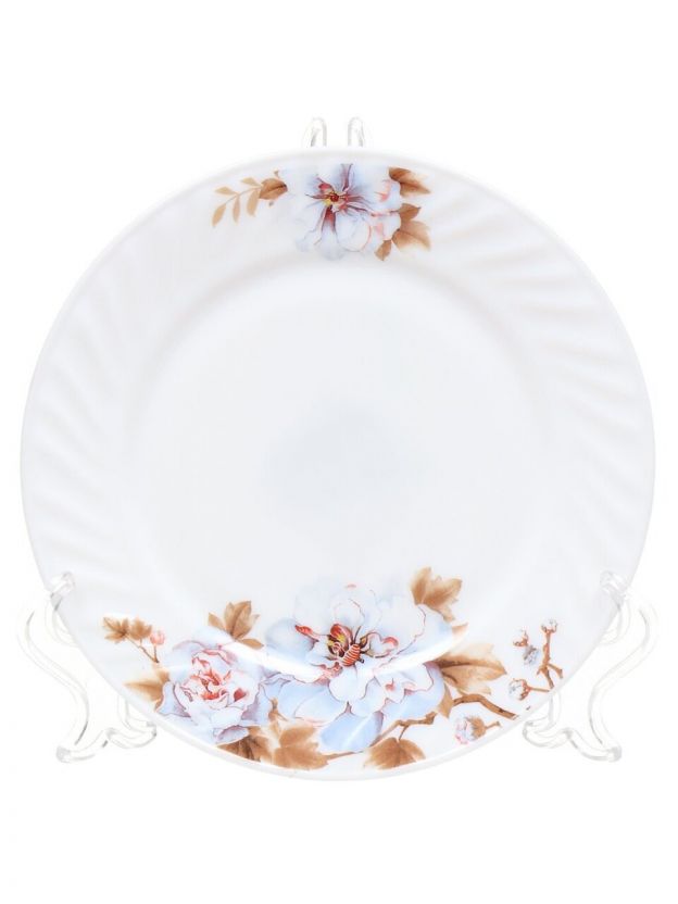 Круглая десертная тарелка Daniks Орлеан 18 см: стильная стеклокерамика с цветочным рисунком для сервировки дома и дачи, подходит для СВЧ и посудомоечной машины.