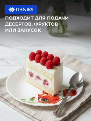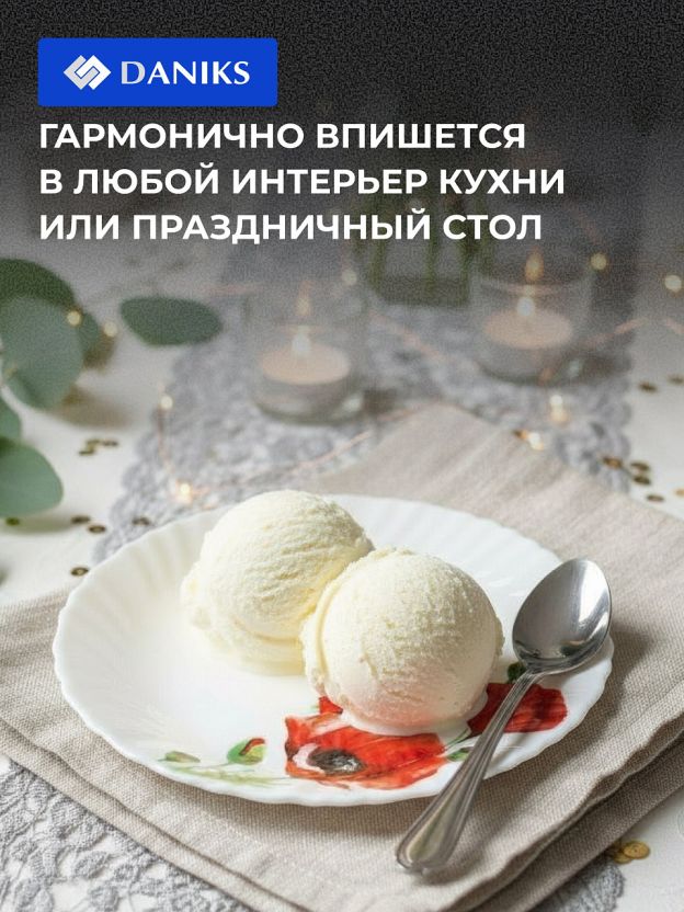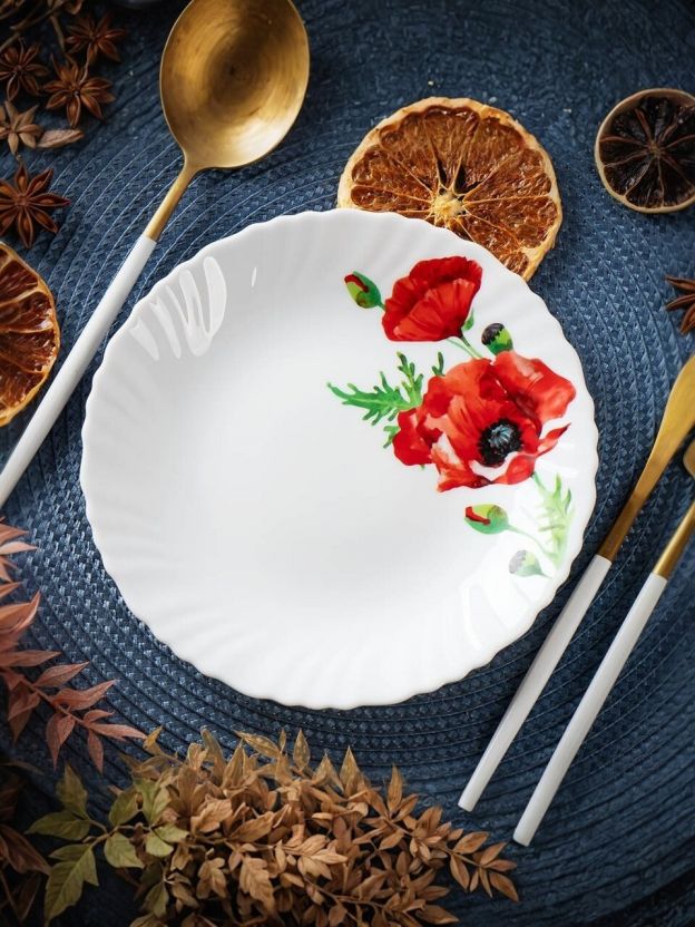 Десертная тарелка Daniks «Алый мак», 19 см: стиль для сервировки, прочная стеклокерамика, подходит для СВЧ и посудомоечной машины.